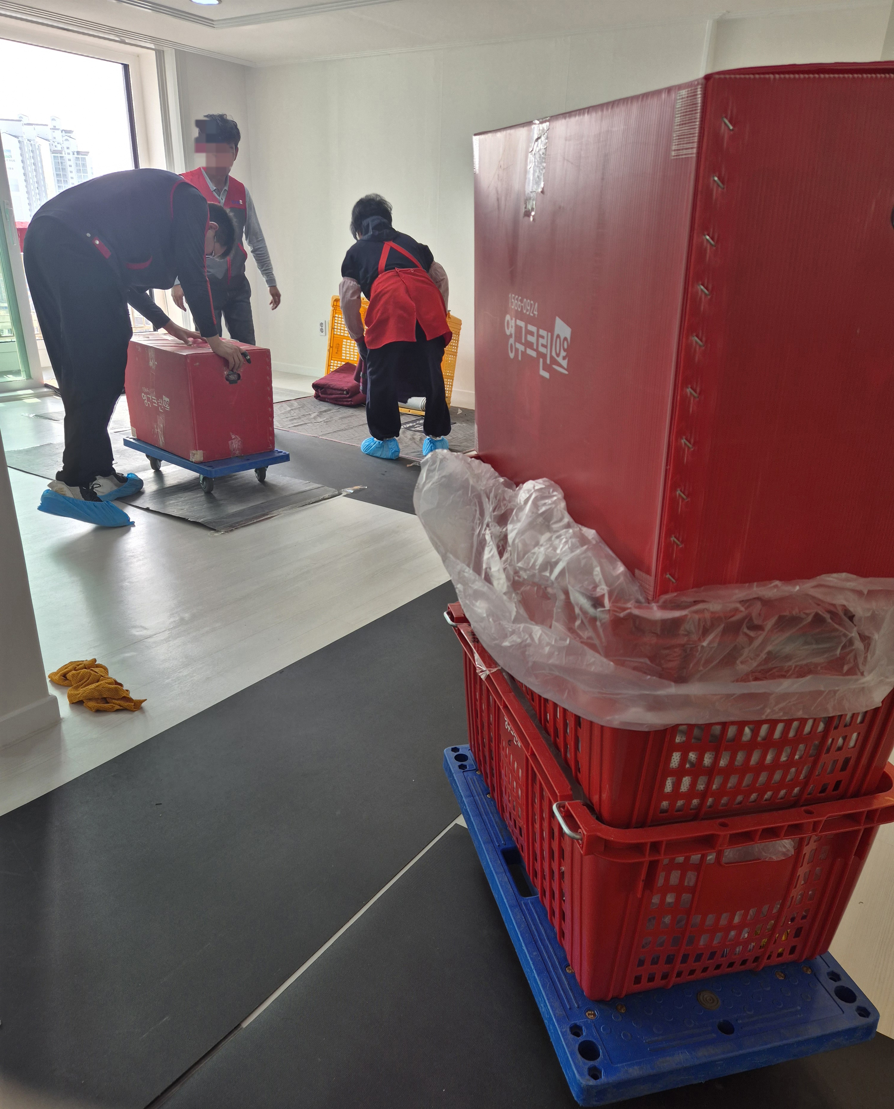도배 장판을 새로 한 집이라 신경써주십사 부탁드렸고, 보양작업 해주셔서 얼룩이나 찍힘 없이 마무리 되었습니다!