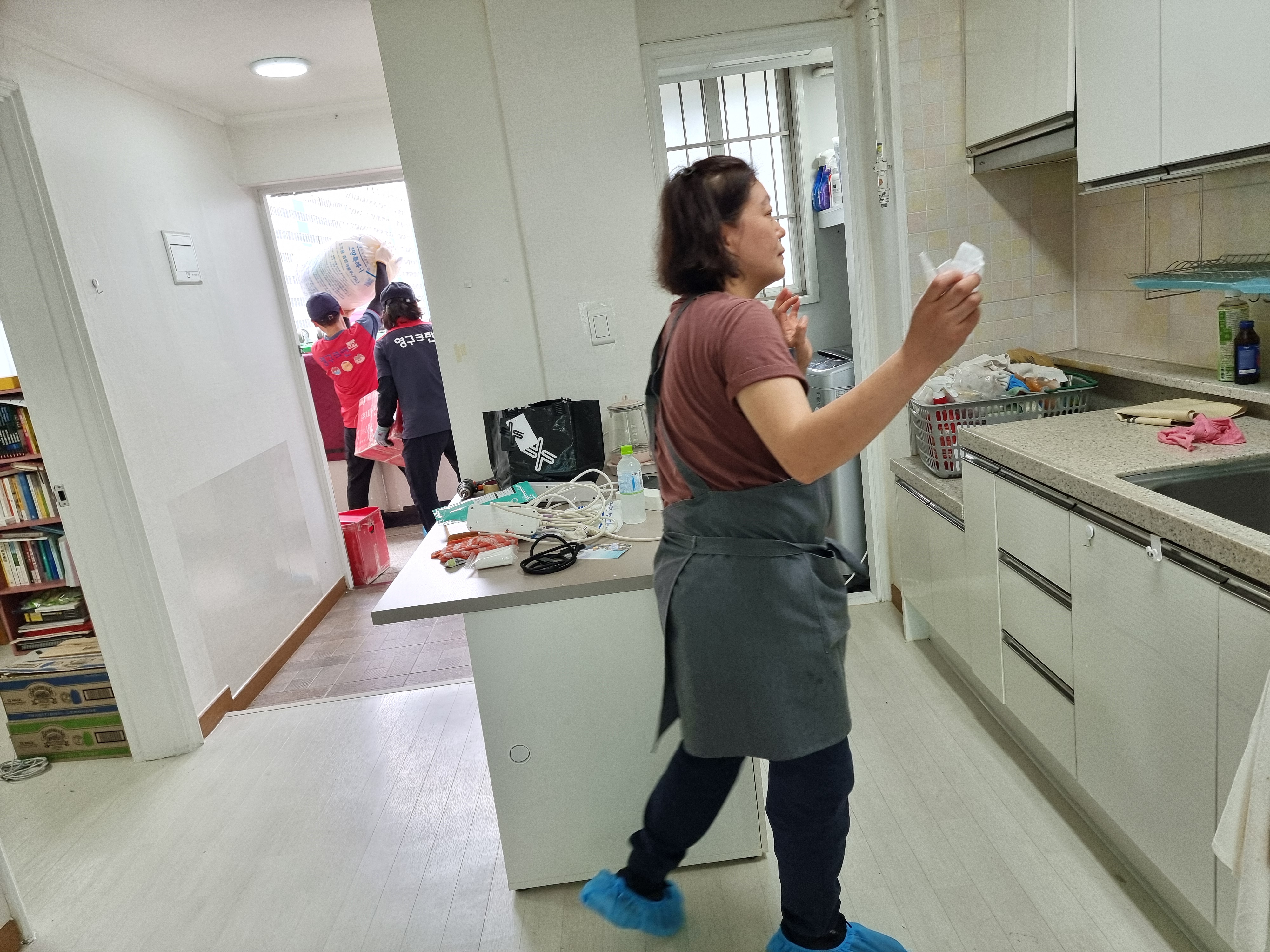 이사 당일, 오전 8시에 이사 팀이 도착했지만, 예기치 못한 상황에 모두 당황하지 않고 짐을 잘 포장하고 이사를 시작했습니다. 부엌 담당 이모님은 유통기한 지난 음식(장류, 소스, 음료수 등)을 정리해주시며, 냉장고와 찬장도 깔끔하게 정리해주셨습니다. 이사 팀은 짜증 한 마디 없이 모두 친절하게 대해주셨고, 각자 맡은 역할을 신속하고 정확하게 해주셨습니다.