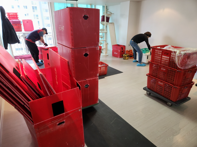 오늘 비도 오고 이동 거리도 상당해서 힘드셨을텐데, 작업 속도며 꼼꼼함이며 진짜 예술이었어요. 팀원분들 합이 너무 잘 맞아서 짐도 후딱후딱 빨리 끝났구요! 굉장히 활기차게 일하시더라고요ㅎㅎㅎ