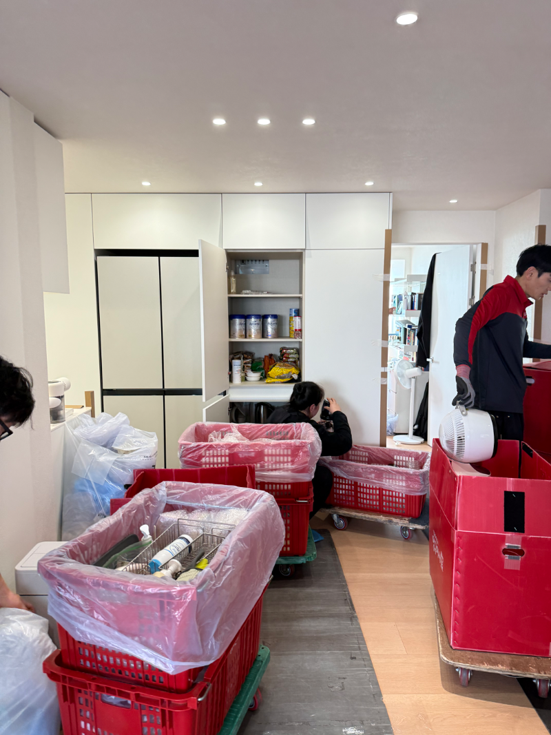 잡짐이 엄청 많은 집이라서 늦은 시간까지너무 애써주셨어요힘든내색 한번 없으시고 요청사항 다 들어주시는데넘나 감사했습니다!팀장님 이불 정리 솜씬 생활의 달인이세요! ㅋㅋ냉장고 정리도 깔끔하게 해주시고 복잡한 피시들 척척 해주시고팀웤이 너무 좋은팀이라 정말 좋았습니다!너무너무 고생 많으셨어요!!!!