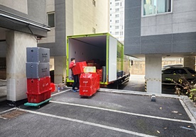 영구크린 전용차량, 유니폼 및 전용자재 사용, 바닥보강재 설치 완료, 아이스박스 청결 양호, 이중비닐 포장 및 에어캡 포장, 가전, 가구 커버포장 진행 등