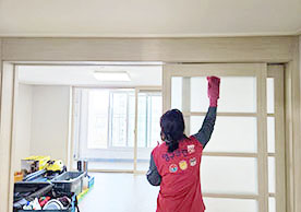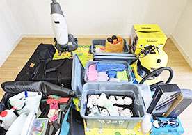 마루세정기, 고압 스팀청소기 등의 전문적인 청소장비와 깔끔하게 잘 정리된 타올 및 기타장비 세팅모습은 부족함이 없었습니다.