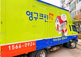 영구크린 전용차량, 유니폼 및 전용자재 사용, 바닥보강재 설치 완료, 아이스박스 청결 양호, 이중비닐 포장 및 에어캡 포장, 가전, 가구 커버포장 진행 등