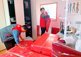 영구크린 전용차량, 유니폼 및 전용자재 사용, 바닥보강재 설치 완료, 아이스박스 청결 양호, 이중비닐 포장 및 에어캡 포장, 가전, 가구 커버포장 진행 등