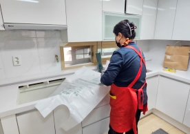 영구크린 전용차량, 유니폼 및 전용자재 사용, 바닥보강재 설치 완료, 아이스박스 청결 양호, 이중비닐 포장 및 에어캡 포장, 가전, 가구 커버포장 진행 등