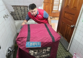 영구크린 전용차량, 유니폼 및 전용자재 사용, 바닥보강재 설치 완료, 아이스박스 청결 양호, 이중비닐 포장 및 에어캡 포장, 가전, 가구 커버포장 진행 등