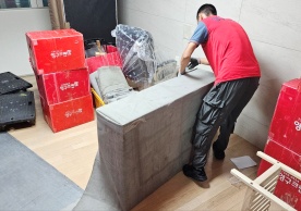 영구크린 전용차량, 유니폼 및 전용자재 사용, 바닥보강재 설치 완료, 아이스박스 청결 양호, 이중비닐 포장 및 에어캡 포장, 가전, 가구 커버포장 진행 등