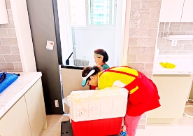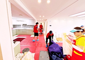 영구크린 전용차량, 유니폼 및 전용자재 사용, 바닥보강재 설치 완료, 아이스박스 청결 양호, 이중비닐 포장 및 에어캡 포장, 가전, 가구 커버포장 진행 등