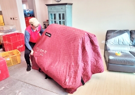 영구크린 전용차량, 유니폼 및 전용자재 사용, 바닥보강재 설치 완료, 아이스박스 청결 양호, 이중비닐 포장 및 에어캡 포장, 가전, 가구 커버포장 진행 등