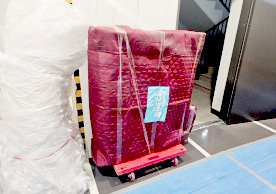 영구크린 전용차량, 유니폼 및 전용자재 사용, 바닥보강재 설치 완료, 아이스박스 청결 양호, 이중비닐 포장 및 에어캡 포장, 가전, 가구 커버포장 진행 등