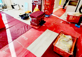 영구크린 전용차량, 유니폼 및 전용자재 사용, 바닥보강재 설치 완료, 아이스박스 청결 양호, 이중비닐 포장 및 에어캡 포장, 가전, 가구 커버포장 진행 등