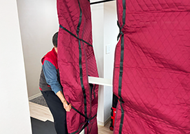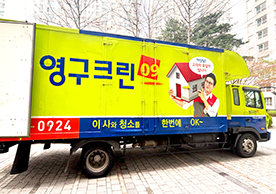영구크린 전용차량, 유니폼 및 전용자재 사용, 바닥보강재 설치 완료, 아이스박스 청결 양호, 이중비닐 포장 및 에어캡 포장, 가전, 가구 커버포장 진행 등