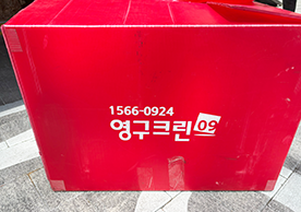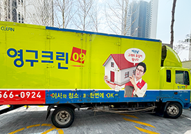 영구크린 전용차량, 유니폼 및 전용자재 사용, 바닥보강재 설치 완료, 아이스박스 청결 양호, 이중비닐 포장 및 에어캡 포장, 가전, 가구 커버포장 진행 등