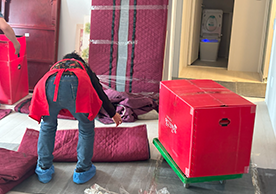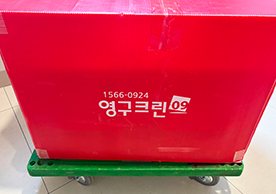 영구크린 전용차량, 유니폼 및 전용자재 사용, 바닥보강재 설치 완료, 아이스박스 청결 양호, 이중비닐 포장 및 에어캡 포장, 가전, 가구 커버포장 진행 등