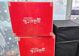 영구크린 전용차량, 유니폼 및 전용자재 사용, 바닥보강재 설치 완료, 아이스박스 청결 양호, 이중비닐 포장 및 에어캡 포장, 가전, 가구 커버포장 진행 등