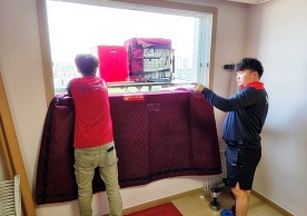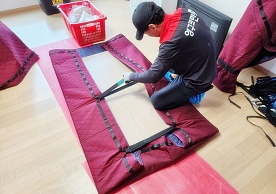 다만, 기존 바닥보강재를 사용하여 테이프로 고정한 모습이 적발되었습니다. 테이프 없는 이사서비스 현장이 될 수 있도록 철저한 점검 및 개선바랍니다.