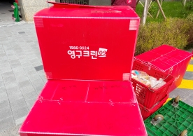 영구크린 전용차량, 유니폼 및 전용자재 사용, 바닥보강재 설치 완료, 아이스박스 청결 양호, 이중비닐 포장 및 에어캡 포장, 가전, 가구 커버포장 진행 등