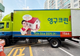 영구크린 전용차량, 유니폼 및 전용자재 사용, 바닥보강재 설치 완료, 아이스박스 청결 양호, 이중비닐 포장 및 에어캡 포장, 가전, 가구 커버포장 진행 등