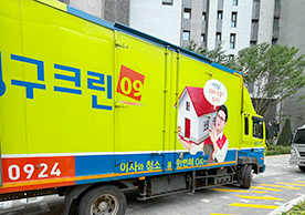 영구크린 전용차량, 유니폼 및 전용자재 사용, 바닥보강재 설치 완료, 아이스박스 청결 양호, 이중비닐 포장 및 에어캡 포장, 가전, 가구 커버포장 진행 등