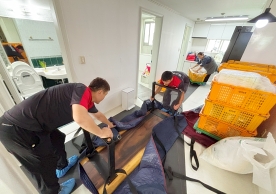 영구크린 전용차량, 유니폼 및 전용자재 사용, 바닥보강재 설치 완료, 아이스박스 청결 양호, 이중비닐 포장 및 에어캡 포장, 가전, 가구 커버포장 진행 등