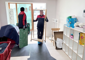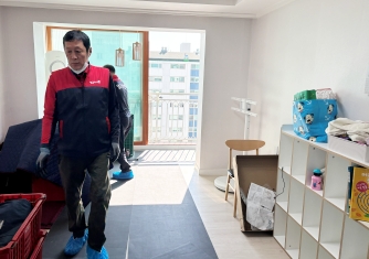 영구이사 전용차량 및 전용자재 사용 이중 비닐포장 및 바닥보강, 덧신 착용 양호