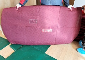 영구이사 전용차량 및 전용자재 사용 이중 비닐포장 및 바닥보강, 덧신 착용 양호