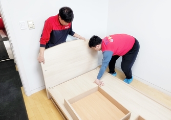 영구이사 전용차량 및 전용자재 사용 이중 비닐포장 및 바닥보강, 덧신 착용 양호