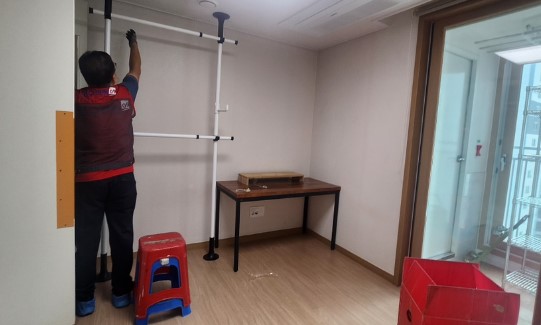 다시 찾기 쉽도록 이전 집에서 정리되어있던 물품별로 구분해서 정리해주셨고 행거, 침대와 같은