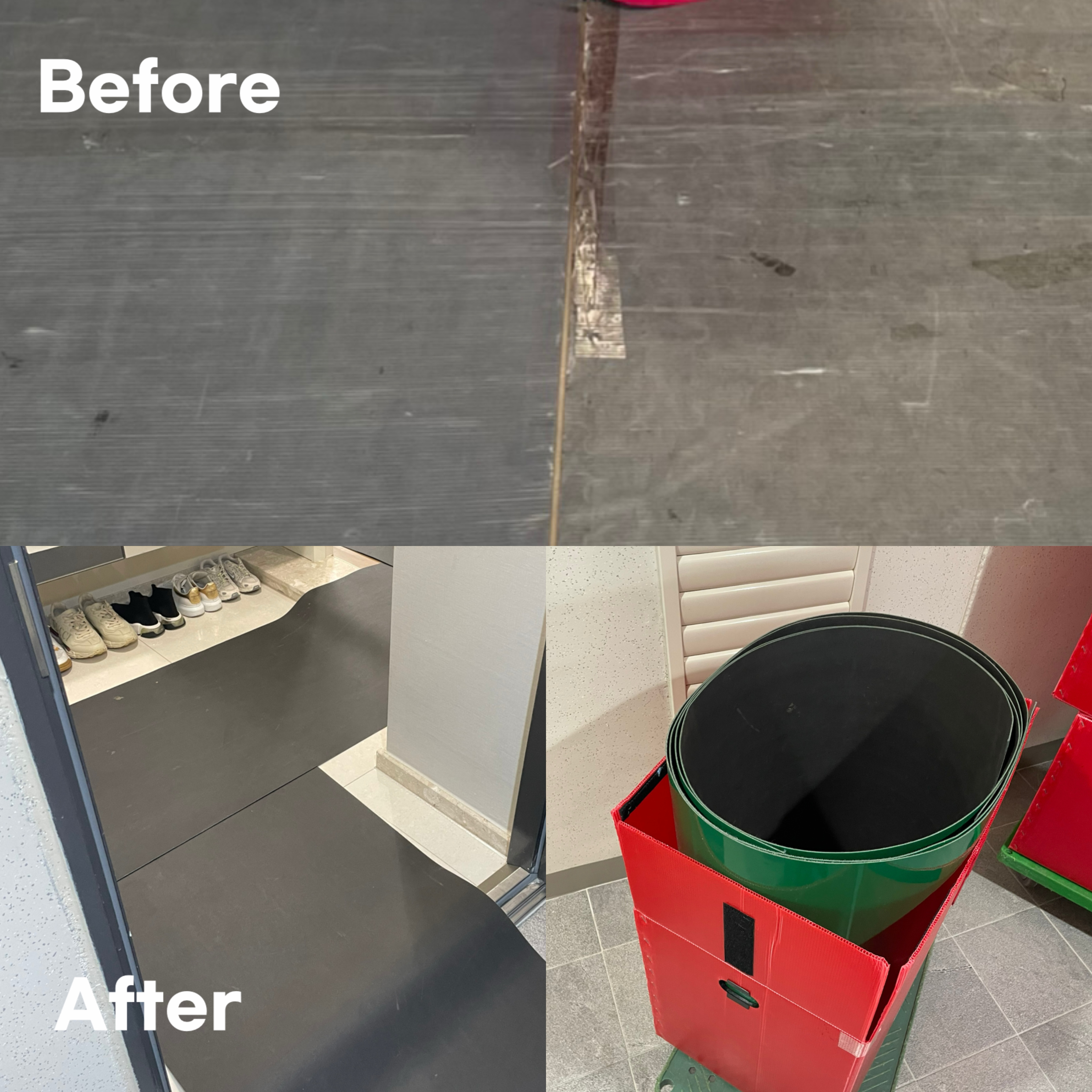 그렇게 이사당일, 견적보실 때 나눠주신 안내서를 이웃집에 걸어놓으면서 한결 마음편하게 이사맞이를 할 수 있었습니다. 9시부터 엘리베이터 사용이 가능함에도 더 일찍 오셔서 이것저것 설명해주시고 바닥보강재도 꼼꼼하게 깔아주셨습니다. 이전에는 조금 얇은 보강재였는데 이번에는 좀 더 두껍고 튼튼한 소재로 바뀌어서 가구나 가전 옮길 때 스크래치나 바닥밀림에 더 안전해보였습니다!