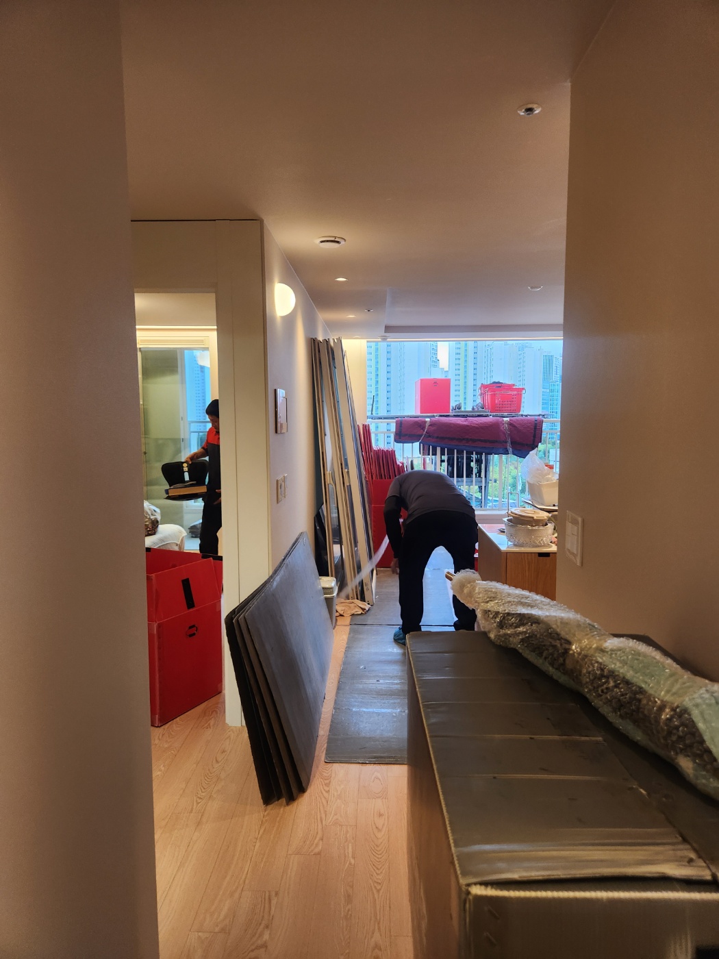 특히 제가 육아로 인해 미처 신경 쓰지 못했던 주방 살림은 베테랑 이모님께서 오셔서 완벽하게 정리해주셨습니다. 수납 위치부터 동선까지 고려해서 착착 정리해주시는데, 몇 년간 골칫거리였던 주방이 새롭게 태어나는 순간이었습니다. 또한, 새집에 장이 아직 들어오지 않아 옷들을 별도 박스에 포장해달라는 다소 번거로운 요청에도 흔쾌히 응해주시고, 나중에 정리하기 쉽도록 분류까지 해주시는 세심함에 또 한 번 감탄했습니다.