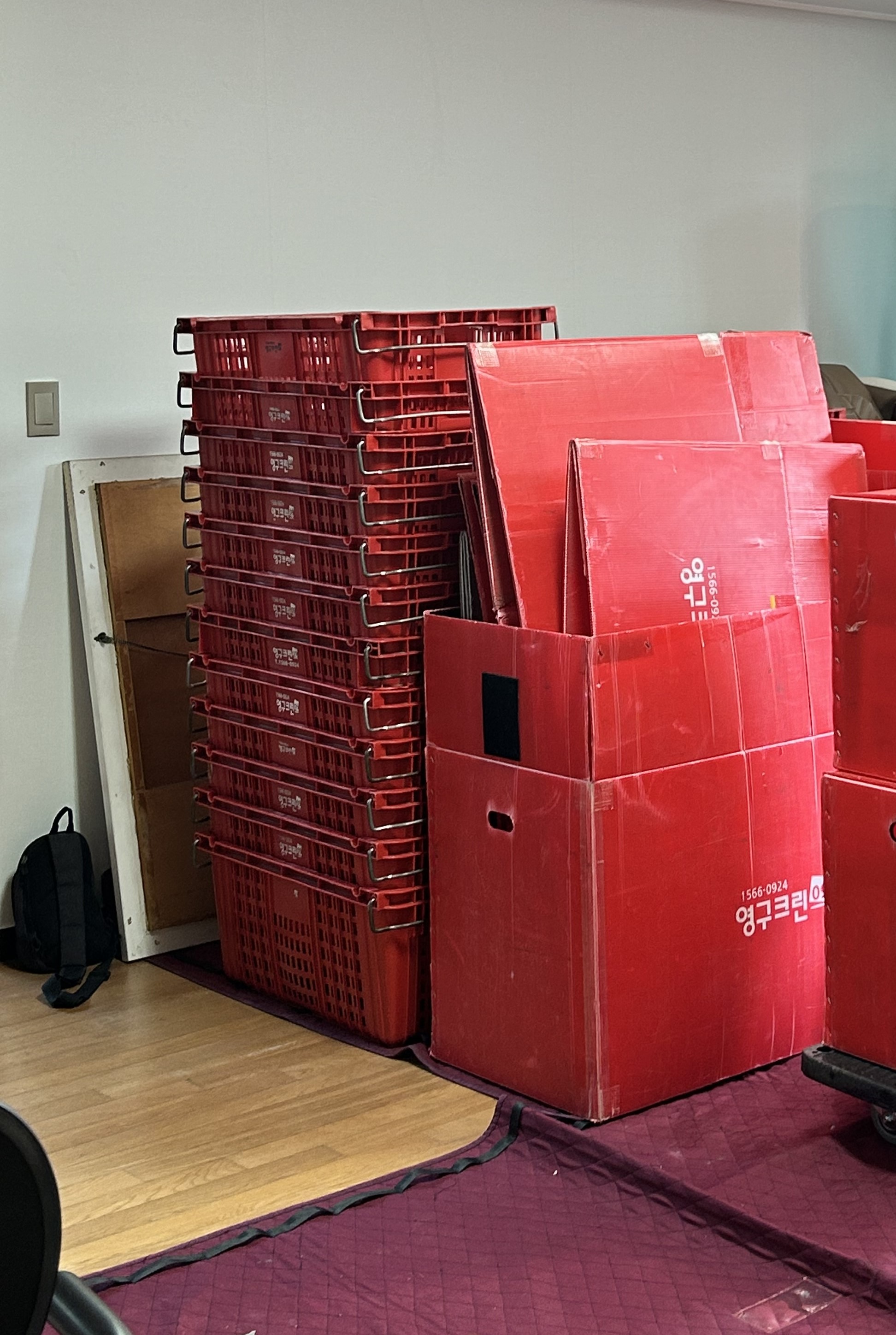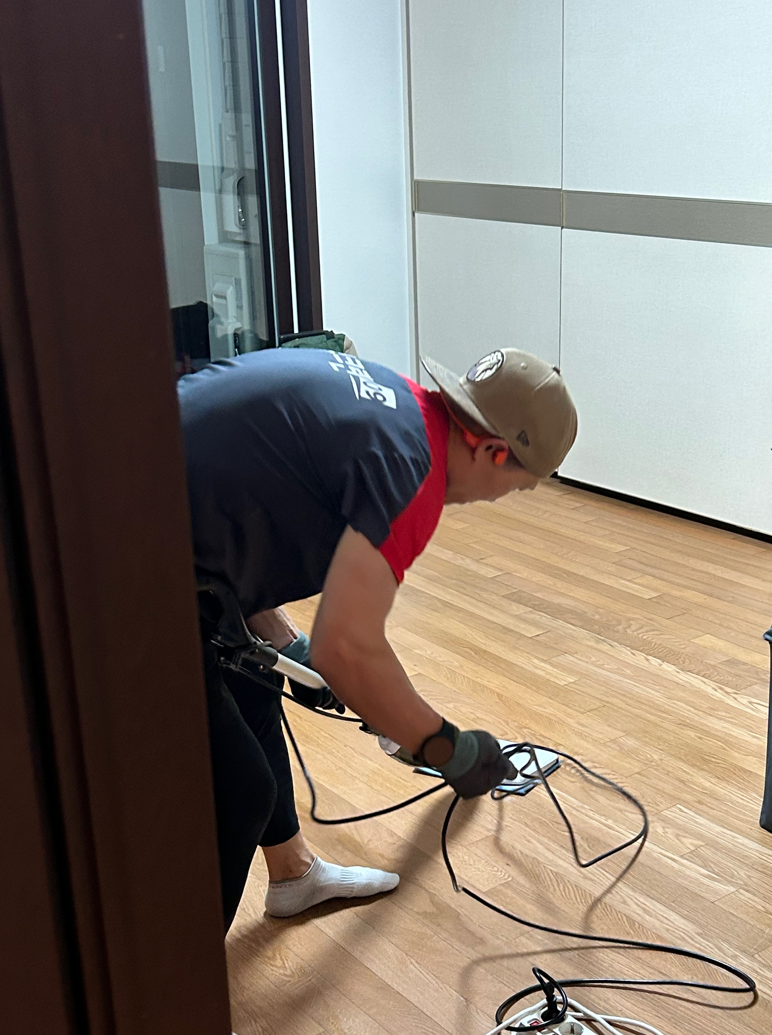 바닥 보호패드를 깔기 이전에 바닥이나 벽 등 파손된 부분이 있는지의 여부에 대해 같이 보고 사진을 미리 찍어두며 불상사가 없게 하는 준비성