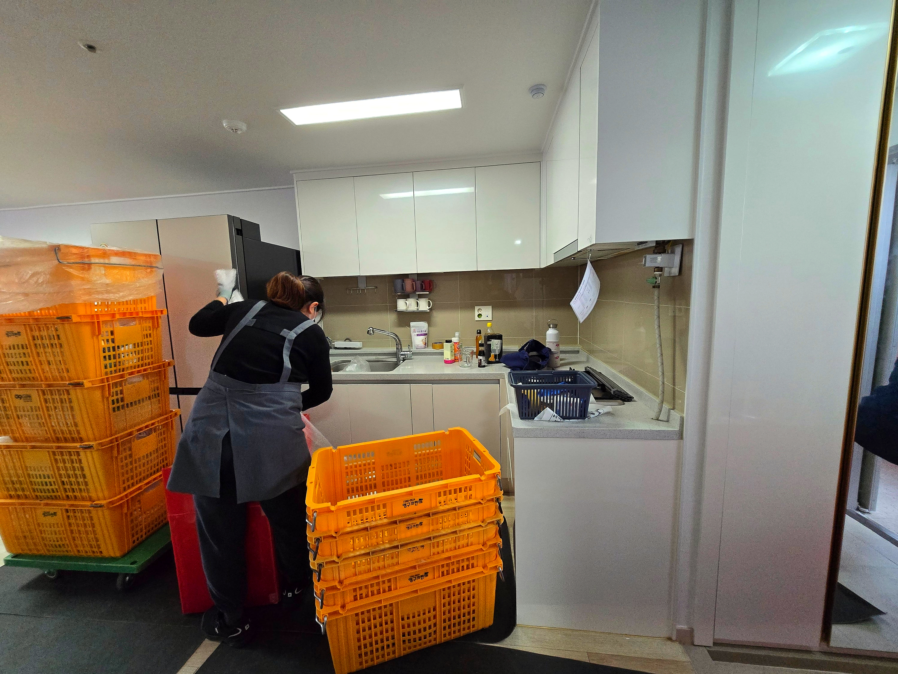 주방전문 여사님께서는 와이프와 잠시 대화를 하시더니 처음 있던 그대로 순간이동 시킨 것처럼 정리를 시작하시는데 그걸 다 기억하신건지 아니면 경험으로 하시는건지 놀라울 정도로 차분하게 정리해서 넣어주시는데 너무 감사했습니다.