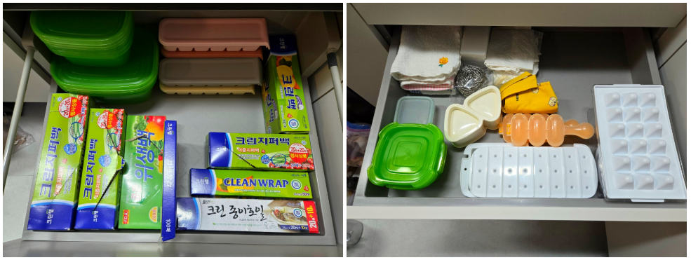 주방서랍은 저희 와이프가 정리했던 것보다 더욱 사용하기 편하게 정리가 잘 되어 있어서 제가 더 놀랐고요.