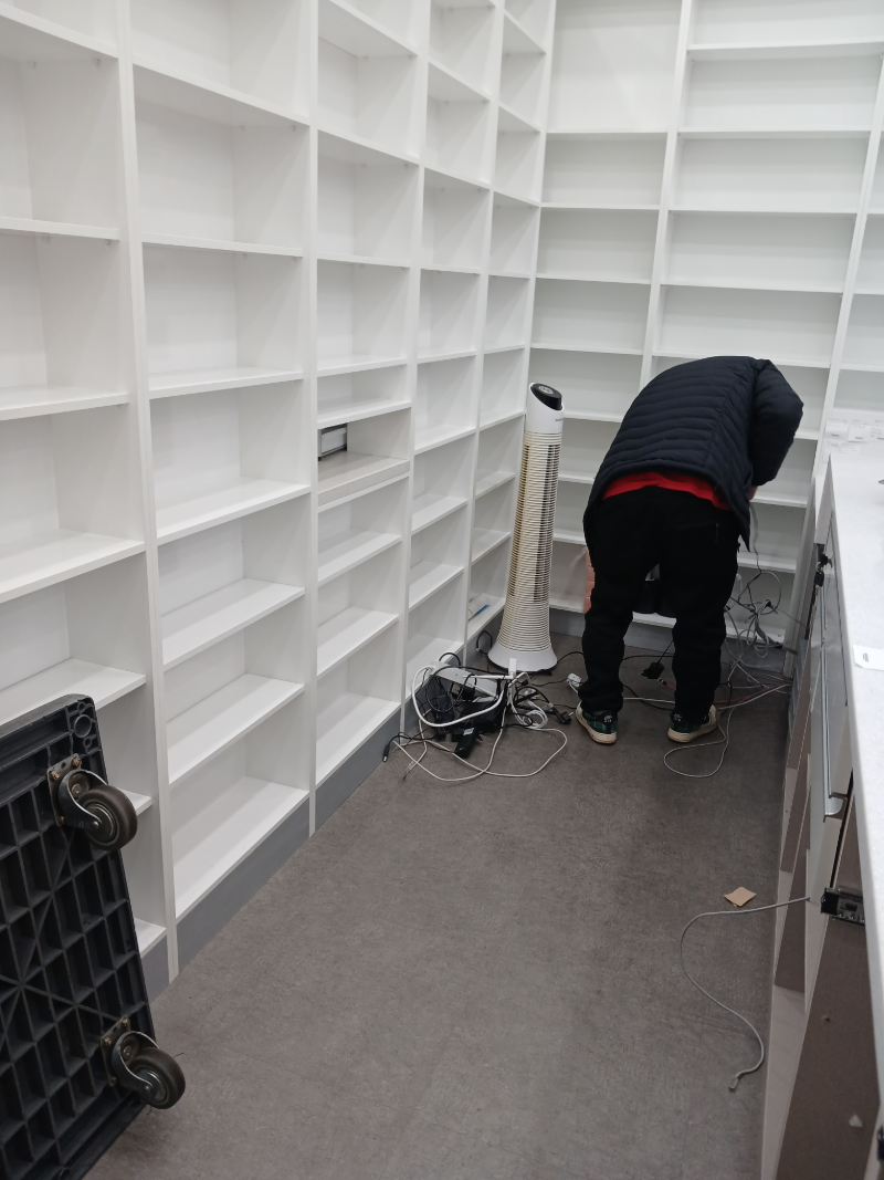 약국 특성상 고가의 장비와 잔짐이 많아 걱정이 컸습니다. 특히 부피가 크고 예민한 JVM ATC156DOC(자동 조제기)를 옮기는 것이 가장 큰 숙제였는데, 팀원분들이 기계 손상을 방지하기 위해 세심하게 신경 써주시는 모습이 인상적이었습니다.