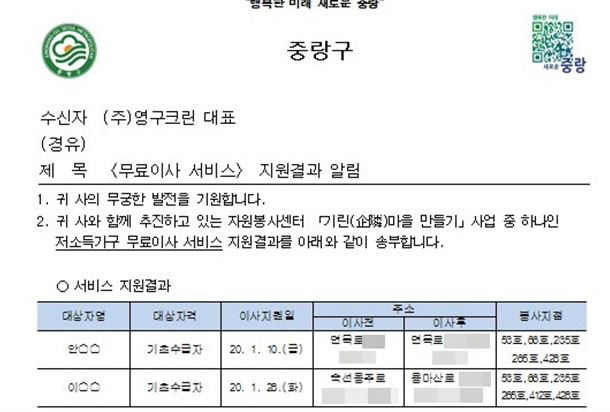 ![]() 20년 1월 26일 53호, 66호, 235호, 265호, 412호, 428호 무료 이사지원