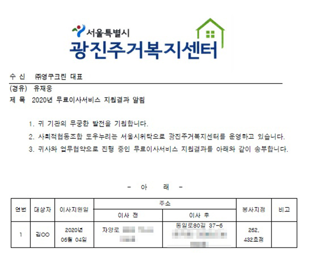 2020년 6월 4일 262호, 432호 무료 이사 지원 서비스 |
