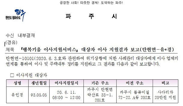 2020년 6월 9일 20호 무료 이사 지원 서비스