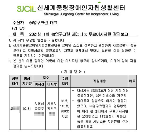 2021년 7월 31일 35호, 113호, 208호 무료이사지원서비스