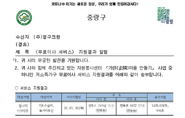 2022년 1월 20일 53호, 428호, 445호 무료이사지원서비스