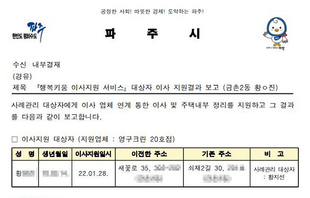 2022년 1월 28일 20호 무료 이사 지원 서비스