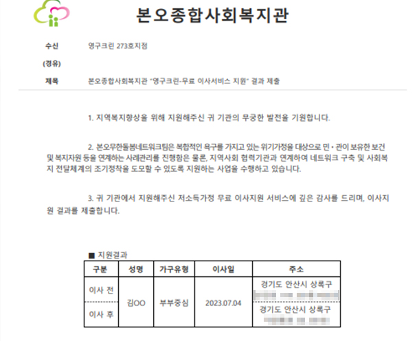 2023년 7월 4일 273호 무료 이사 지원 서비스