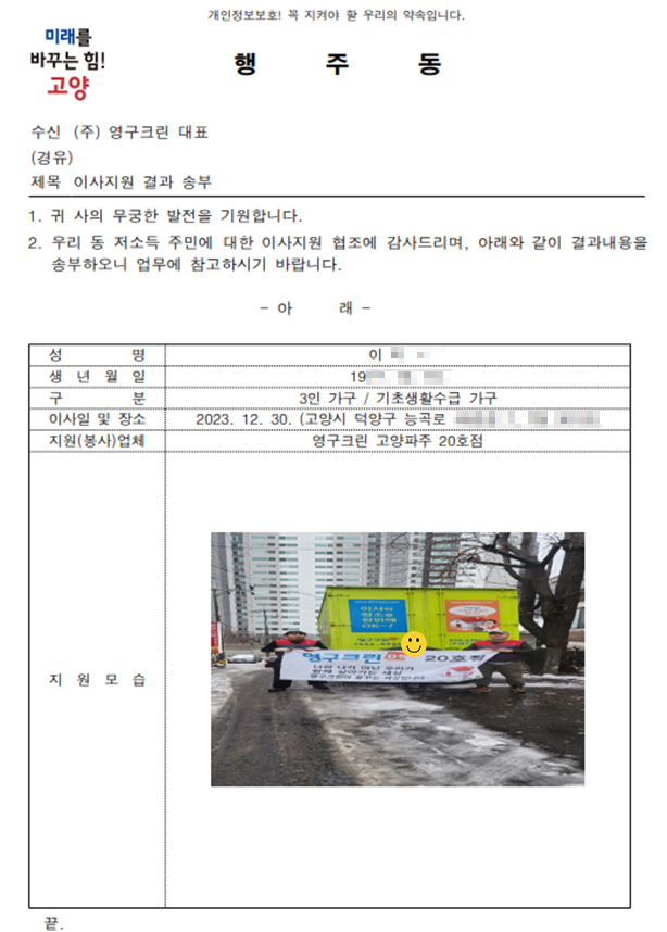 2023년 12월 30일 20호 무료 이사 지원 서비스