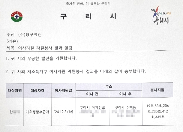 12월 3일 19호, 53호, 206호, 412호, 445호 무료 이사 지원 서비스