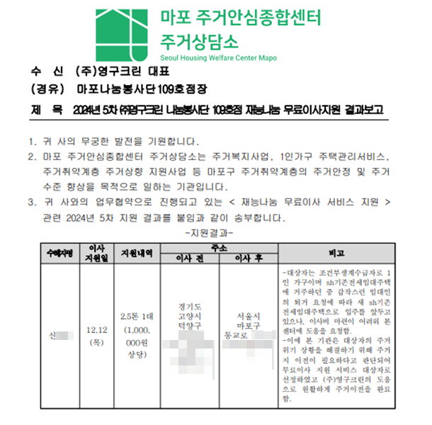 2024년 12월 12일 109호점 무료 이사 지원 서비스