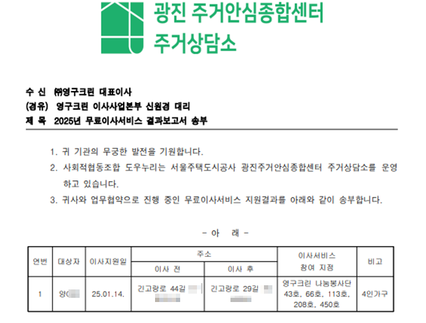 1월 14일 나눔봉사단 43호, 66호, 113호, 208호, 450호 무료이사지원
