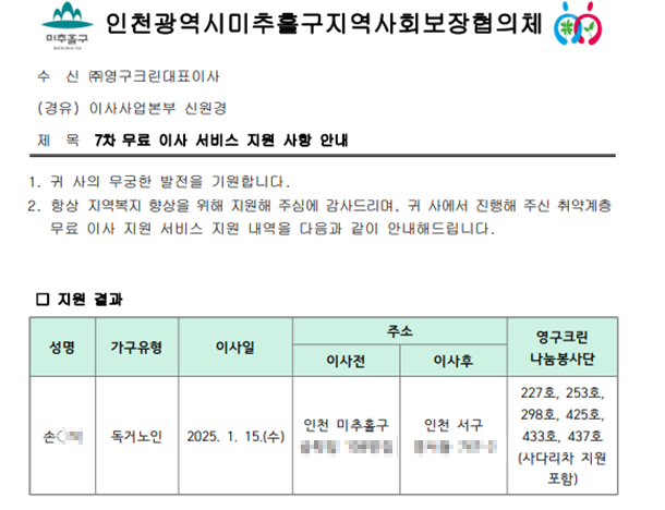 무료 이사 지원 서비스 |