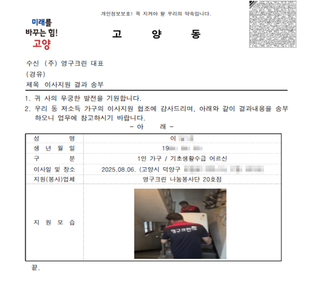 2025년 8월 6일 나눔봉사단 20호점 무료 이사 지원 서비스