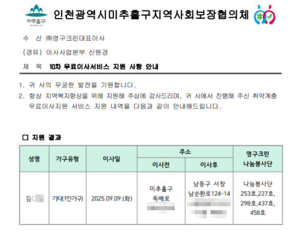 무료 이사 지원 서비스 |