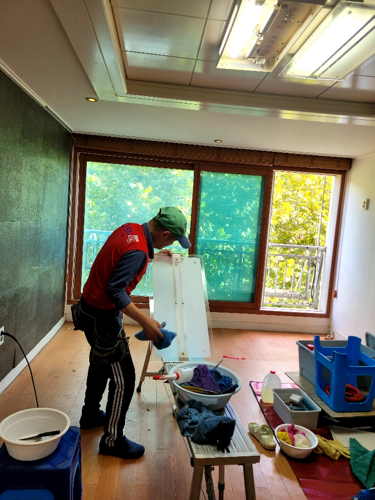 깨끗하다고 생각했는데 생각보다 오염이 심하더라구요..ㅠ샤시 벌레 차단막이 사왔더니 손수부쳐주셨어요 감사합니당 .