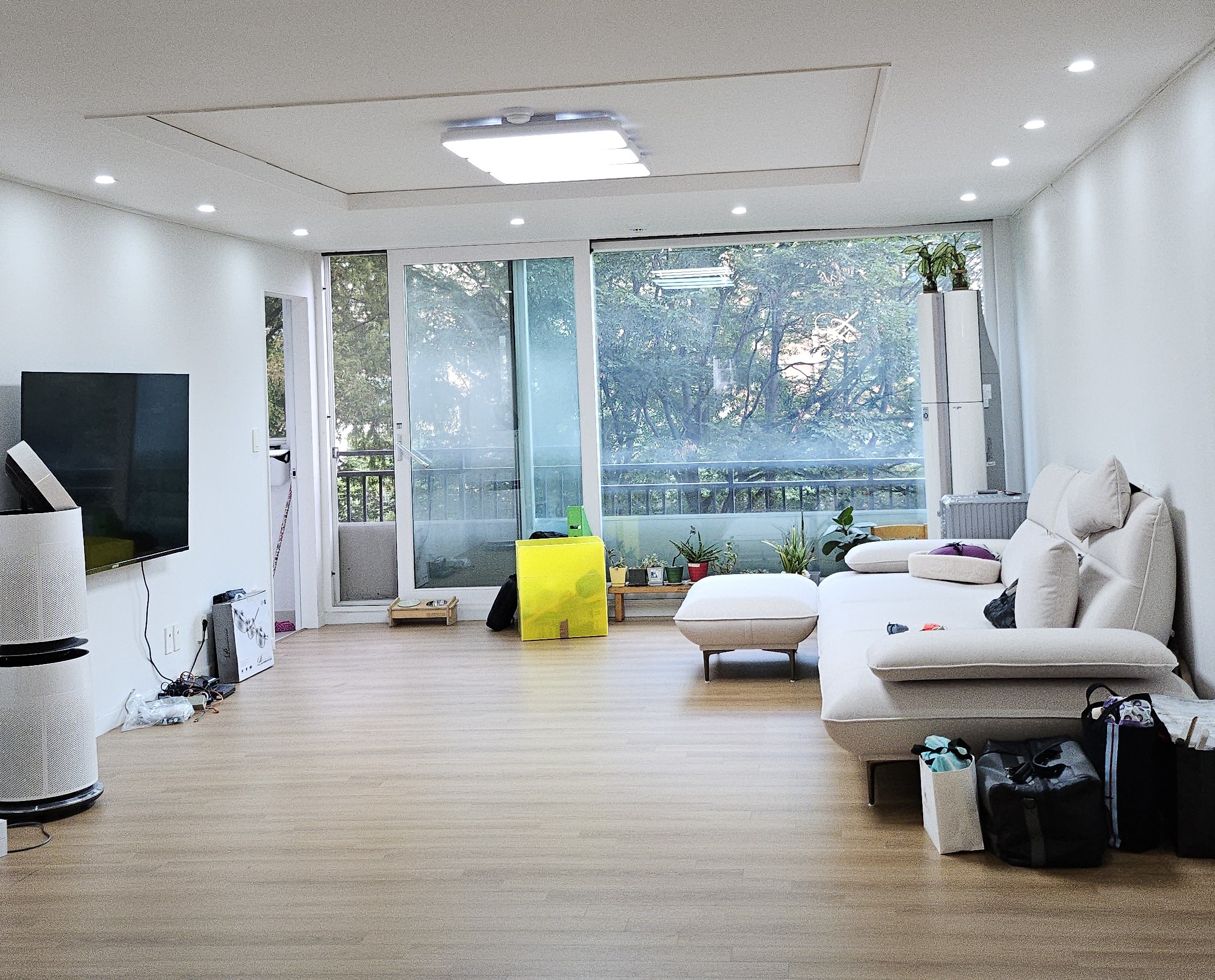 날씨 화창한 더운 여름날 대전에서 경기도 고양시 까지 긴 포장이사를 하게 되었습니다. 저희는 큰 짐이 많지 않고 잔잔바리 짐이 많아서 여자 1분, 남자 3분 오셨고 5톤 차량으로 진행되었습니다. 아침 7시30분 부터 시작이었는데 일찍오셔서 재빠르게 시작되었습니다. 포장이사가 처음이었고 만 9개월 아기가 있어서 위생적으로 이사를 할 수 있을지 걱정이 앞섰는데 새비닐로 하나하나 가전제품은 전용 팩킹 파우치에 안전하게 전문적으로 팩킹하시는 걸 보고 안심이 되었습니다. 남은 짐 하나도 빠짐없이 다 팩킹해주시고 팩킹마치신 후 체크도 꼼꼼하게 해주시고 간단하게 청소도 해주셨습니다. 이사올 집에서도 재빠르게 분업하셔서 짐 풀어 주셨는데 미리 사서 셋팅해둔 세탁기 떄문에 냉장고가 안들어가는 돌발상황이 발생했었는데 하단 냉장고 다리부분 분해까지 하셔서 겨우 셋팅 해주셨습니다. 냉장고 문 열고 닫을 떄 쓰기 편한각도 까지 생각해서 해주셔서 너무 감사했습니다. 비좁은 입구로 들어가는 냉장고 사진이에요 ㅎㅎ 육안으로는 장식을 뜯어내야하나 했는데 전문적인 솜씨에 감탄했고 땀 뻘뻘 흘리시며 힘든내색 안하시는 모습에 감동적이었습니다. 짐을 싸는것보다 푸는게 일이었는데 물건들 어떻게 셋팅할지 최대한 저와 소통해주시며 집안에서의 동선을 고려하여 충분히 고민하고 셋팅해주시는게 만족스러웠습니다. 걱정한거와는 다르게 만족도 99% 였어요. 더운날씨에 고생해주신 영구이사 256호점 칭찬합니다 :)